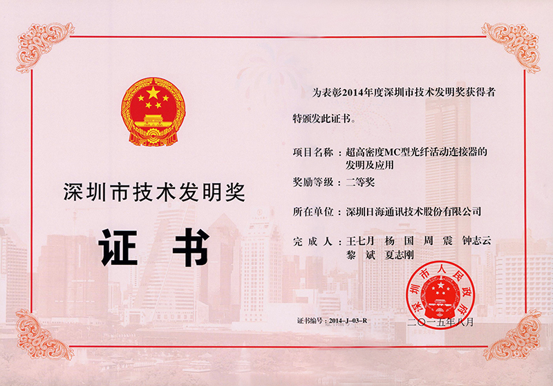 • Jointly established Shenzhen High-speed network physical connection engineering technology research center with Shenzhen Municipal Government.