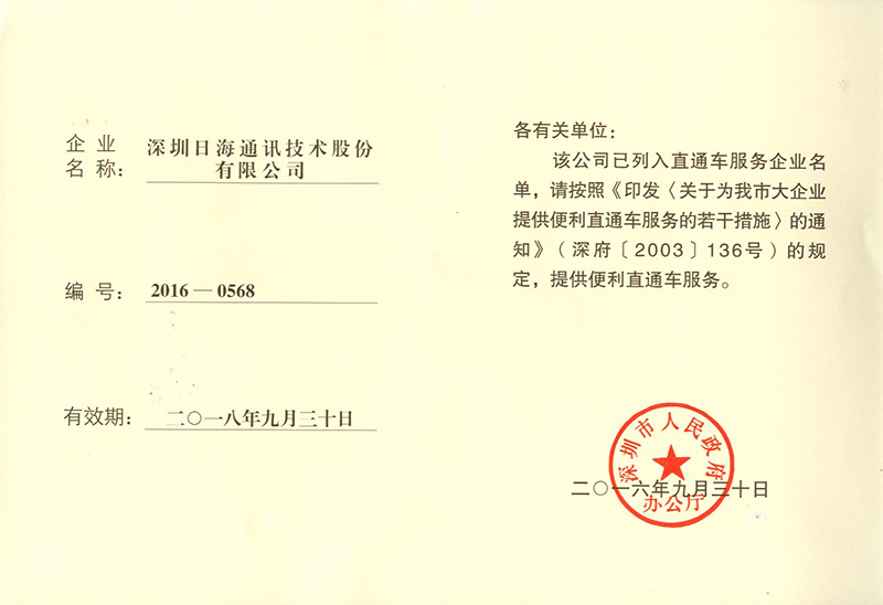 • In April, it was listed as key high-tech enterprise supported by the Shenzhen Municipal Government for development.
